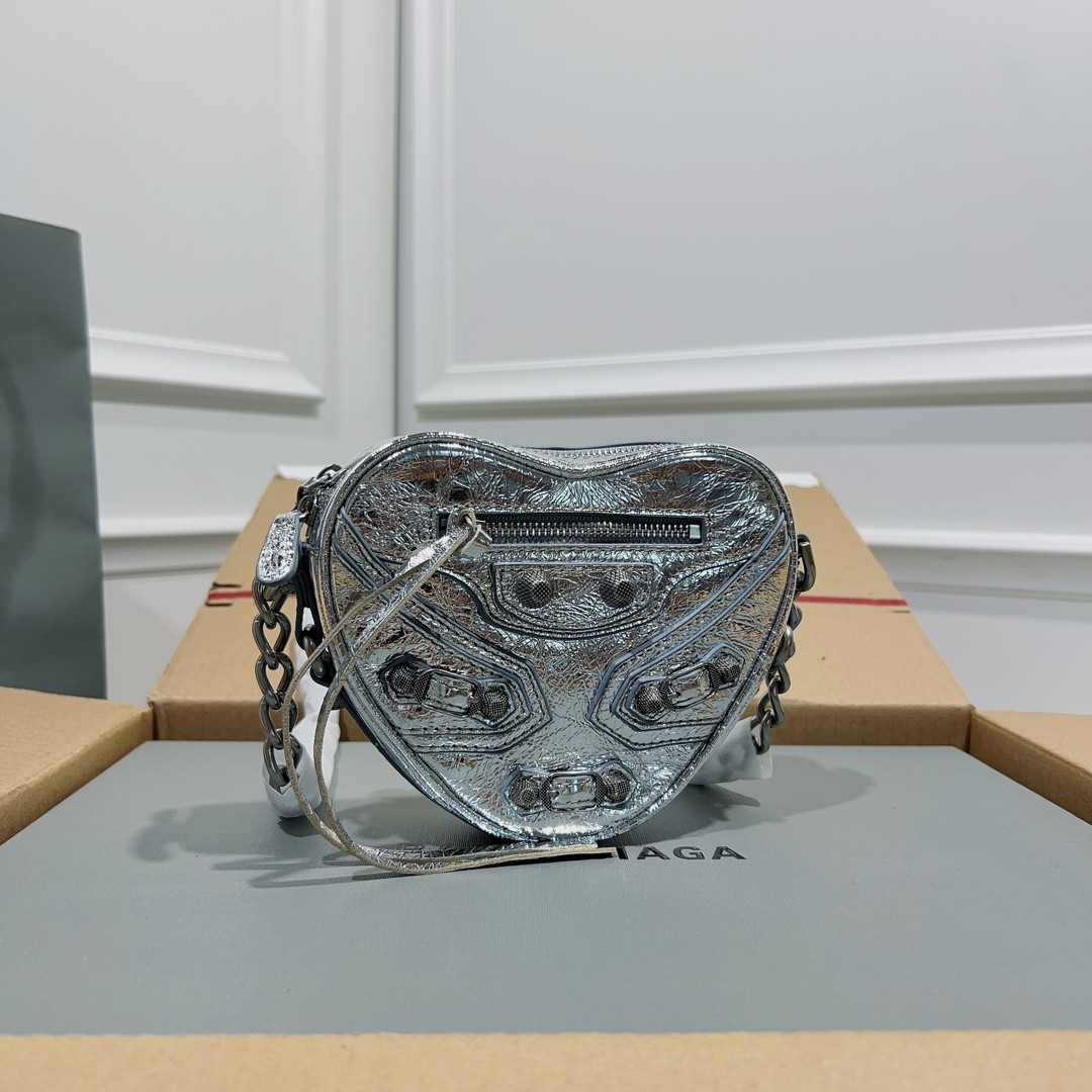Ba*len*cia*ga le cagole heart mini metallic crinkled-leather shoulder bag