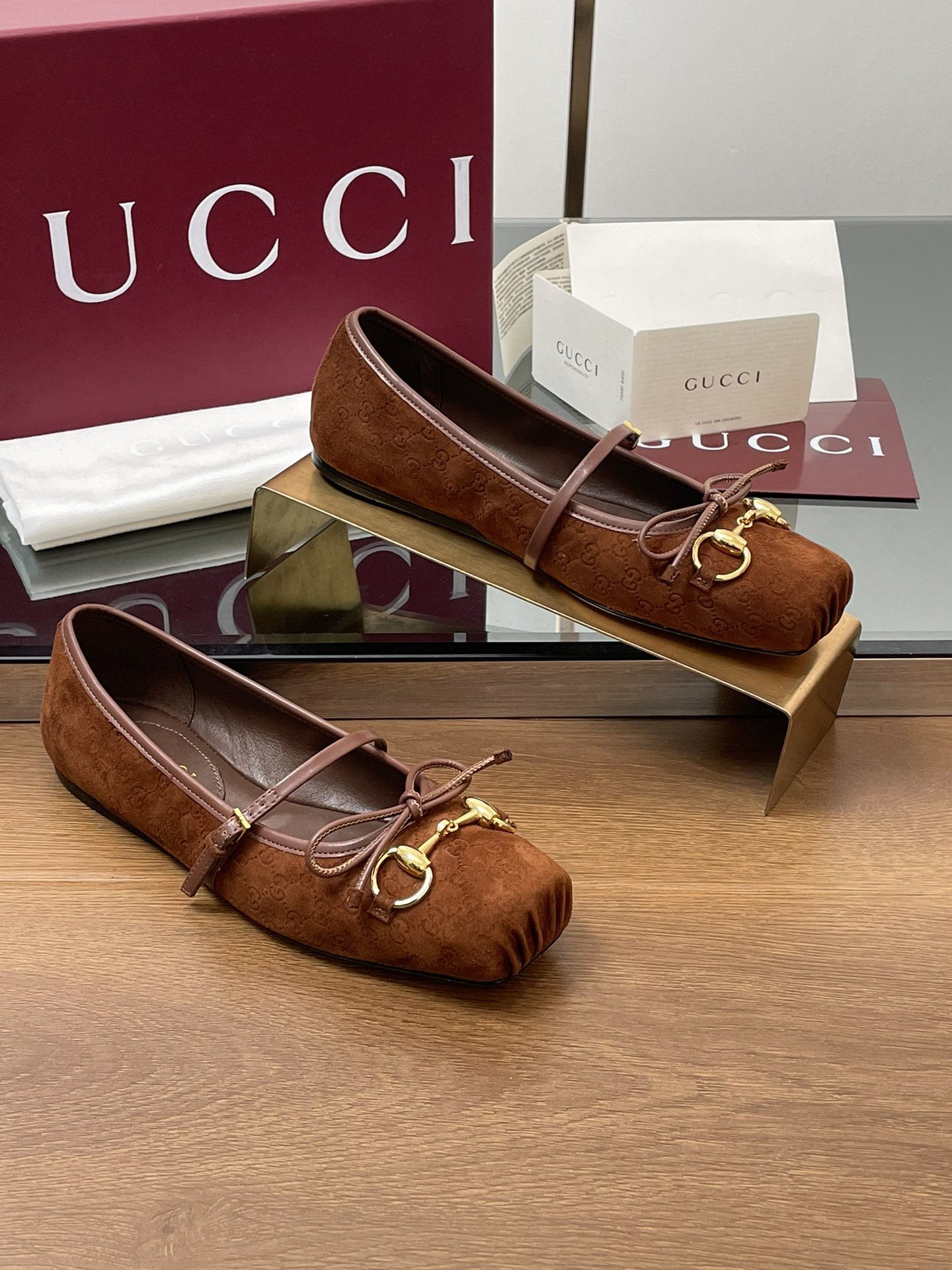 G*u*i men's leather horsebit loafer with web